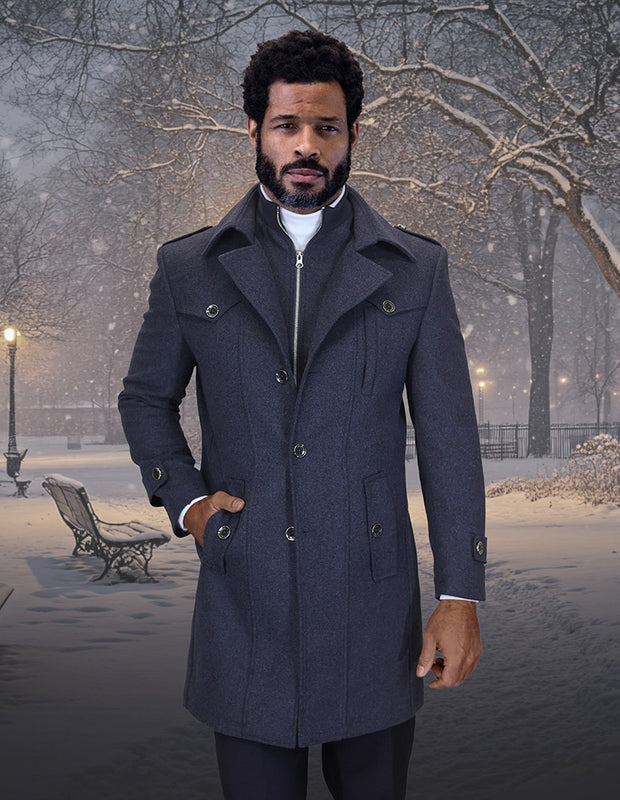 This versatile wool jacket features a removable under piece with a zipper, offering two styles in one. Perfect for layering, it combines warmth and adaptability for any season.