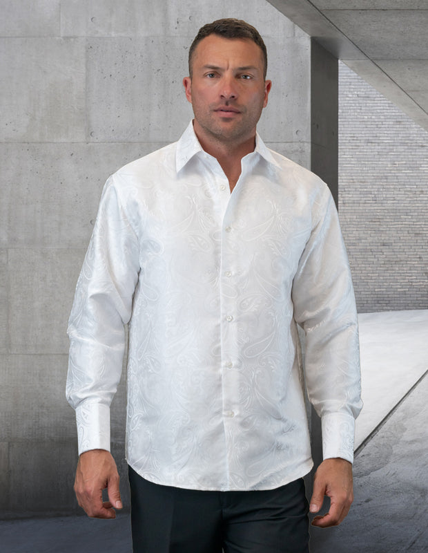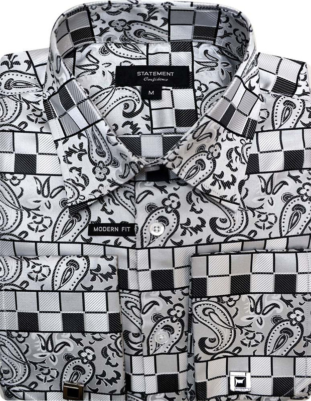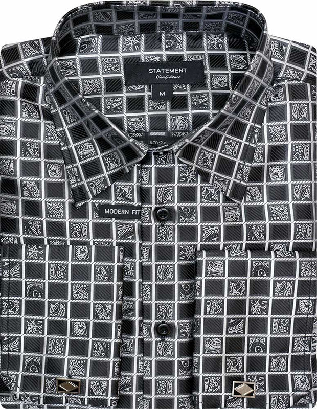 A high-quality fancy woven dress shirt designed for a sharp, polished look. Finished with matching cuff links for added sophistication.